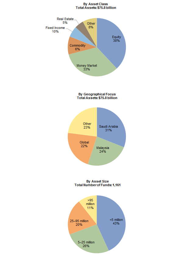 The Islamic financial services industry includes Islamic banking, that is, banking based on Shariah principles; Sukuk, a form of Islamic debt obligation similar to bonds; Takaful contributions, a cooperative system of reimbursement with some similarities to insurance; and assets in Islamic (i.e., Shariah-compliant) funds. Islamic banking has been the driving force of the global Islamic finance industry, given the growth of Islamic banks across the GCC and Southeast Asia, while the Sukuk market has also seen rapid recent growth. Islamic asset management remains a niche segment of the Islamic financial services industry despite strong recent growth. A complete picture of the market is hard to come by, but based on a review of several sources, the total number of Islamic funds has risen from 285 in 2004 to 1,161 through third quarter 2014, while assets under management were estimated to be US$75.8 billion through third quarter 2014. However, this constitutes an estimated 4% of global Islamic finance assets (Figure 1).