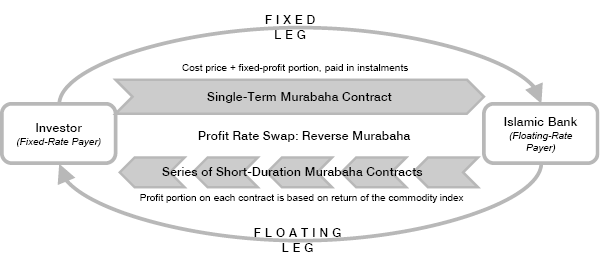 Implementation. Given that direct investments and commodity futures–like funds are not practical options today, for investors seeking exposure to commodities, the logical alternative to active commodity management is the tracking of an index through a passive fund. Indices that screen out non-Shariah compliant industries are available, such as Bloomberg Commodity Modified ex Hogs Total Return Index; however, these indices are based on conventional derivatives. To avoid these non-Islamic financial structures, some investors enter into a contract similar to a swap (conventional commodity exchange- traded funds sometimes use swaps to replicate index performance). Using Islamic principles, a contract can be structured to replicate the cash flows of a conventional swap, although based on a physical principal rather than a notional one.[5]A Wa’ad swap is the promise agreement with which returns from one long-term Murabaha contract are swapped with returns from a series of short-term Murabaha contracts, the maturity of which matches … Continue reading In exchange for paying a long-term, fixed-rate Murabaha, the investor would receive a series of reverse-Murabaha payments based on the returns of a chosen commodity index. Since this series of Murabaha have short maturities and the profit rate is based on the commodity index return at each maturity date, the cash flow is essentially based on a floating rate (Figure 9).