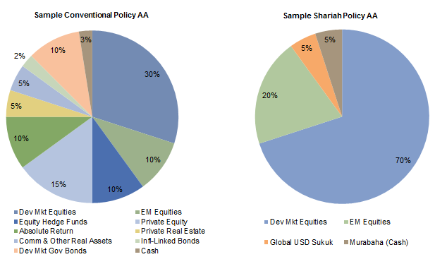 With these considerations in mind, a policy allocation for an Islamic investor might be as follows: