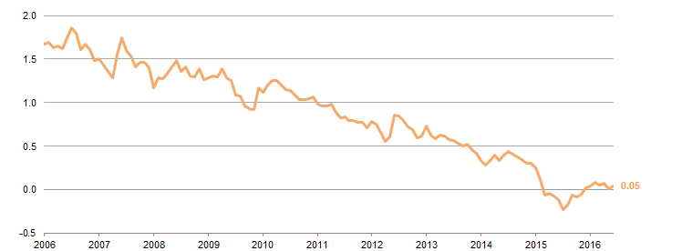 Figure 3. Ten-Year Japanese Government Bond Yields. December 31, 2006 – May 31, 2017 • Yield (%)
