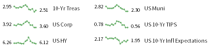 US fixed income yields reflect Bloomberg Barclays Municipal Bond Index, Bloomberg Barclays US Corporate High Yield Bond Index, Bloomberg Barclays US Corporate Investment-Grade Bond Index, and the ten-year Treasury.