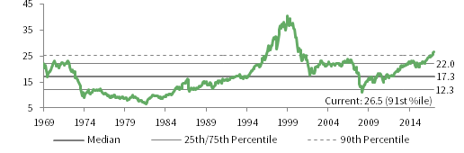 Multiple expansion helped drive US equity returns in 2017 as US stock valuations continued to rerate higher but was much less of a factor in other major equity markets as global equity performance was largely driven by upgraded earnings growth expectations across regions.