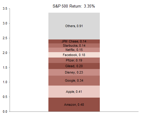 US market breadth has greatly diminished since 2013; year-to-date just ten stocks concentrated in the consumer discretionary, health care, and IT sectors have contributed nearly three-quarters of the S&P’s return