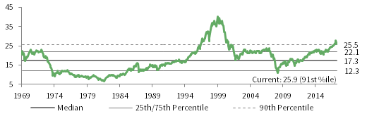 Earnings growth expectations for FY 2018 have been mostly upgraded to start the year, led by positive US earnings revisions due to the anticipated positive impacts from the recent tax cuts. As a result, global equities are currently poised to deliver double-digit EPS growth for a second straight year