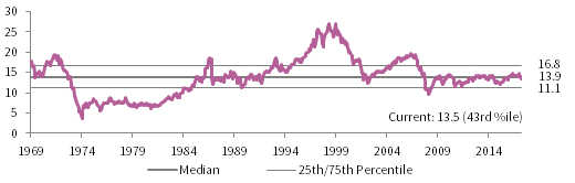 Sources: I/B/E/S, MSCI Inc., and Thomson Reuters Datastream. MSCI data provided “as is” without any express or implied warranties.