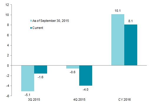 Notes: Current estimates are as of November 27, 2015. Q3 data are a blend of actual results (98% of constituents reporting) and estimates.