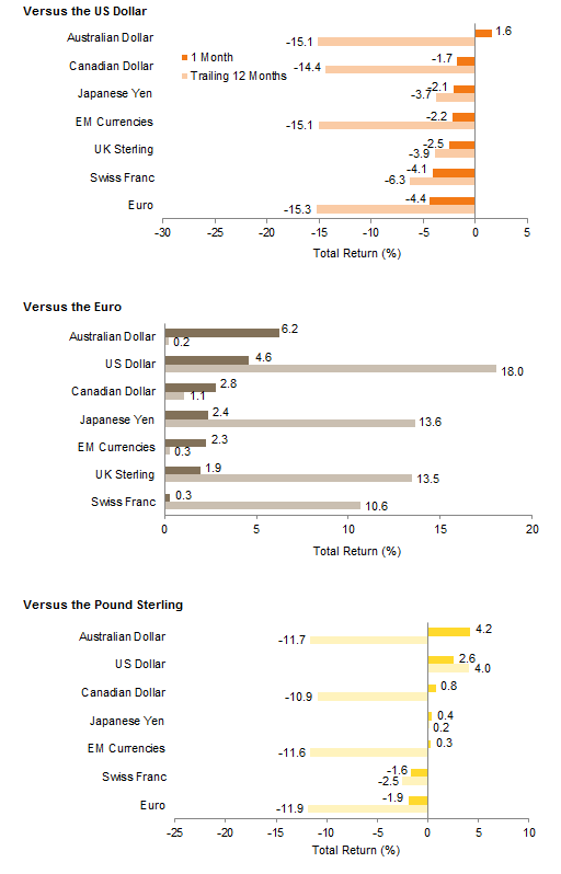US tax-exempt bonds and US equities outperformed other domestic asset classes. The strong dollar weighed on the performance of international assets, meaning US equities outperformed Europe ex UK and Japan for dollar investors with unhedged exposure