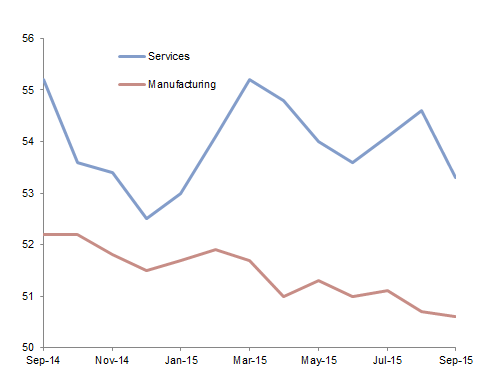 Global growth expectations have been consistently downgraded throughout the year amid China’s economic slowdown and still-lackluster growth across much of the developed world. Global manufacturing activity is barely expanding, while growth in services has been in a general downtrend for several months