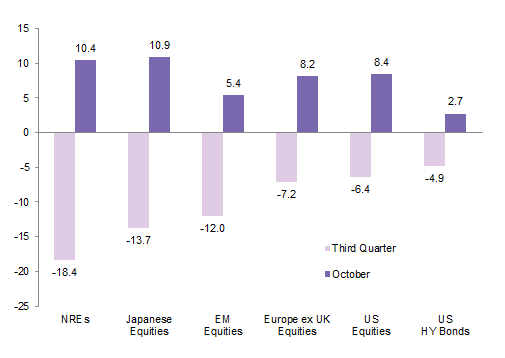 Risk assets rallied sharply in October, clawing back some of their third quarter losses, in response to signals of further monetary easing from the major central banks