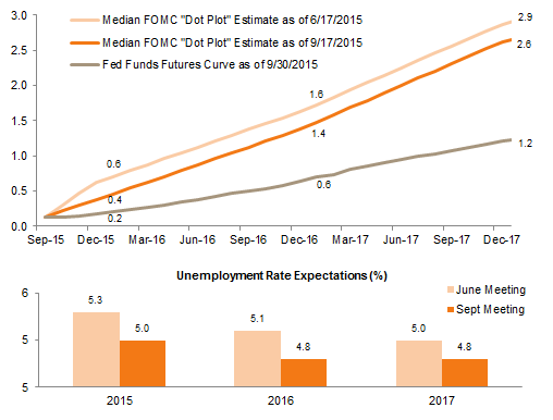 Now economic and political challenges in China and other major emerging markets like Brazil are presenting the greatest risks to the global growth outlook. By comparison, the US economy appears relatively healthy and continues to strengthen, although momentum has waned of late. Similarly, developments in Europe have been largely positive with a “Greek tragedy” once again deferred at the start of the summer and recent evidence that the European Central Bank’s (ECB) quantitative easing program is beginning to bear fruit. Despite progress in developed markets like the United States and Europe, the potential for global economic growth to reaccelerate remains tenuous due to developments in China and the cascading effects on commodity exporters and its other trading partners. The growing importance of Chinese policymaking was revealed by the market’s volatile reaction to the mini-devaluation of the yuan in August, which spurred concerns about a greater-than-admitted economic slowdown when coming on the back of weaker data and an equity market sell-off. Global policy coordination would certainly help dampen the impact of China’s economic transition, though the fact that this devaluation clearly anticipated a rate hike by the Fed (which then did not occur) suggests this is currently lacking. With the risks of global currency wars reigniting, the Fed’s decision to delay could be interpreted as a move in the right direction.