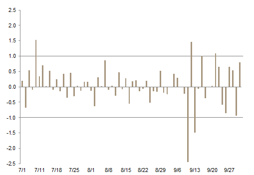 Reassurances from central banks that monetary policy will remain highly accommodative and seasonally depressed trading volumes contributed to muted equity market volatility for most of July and August. Volatility rose somewhat in September as the Fed began to lay the groundwork for a rate hike before year-end